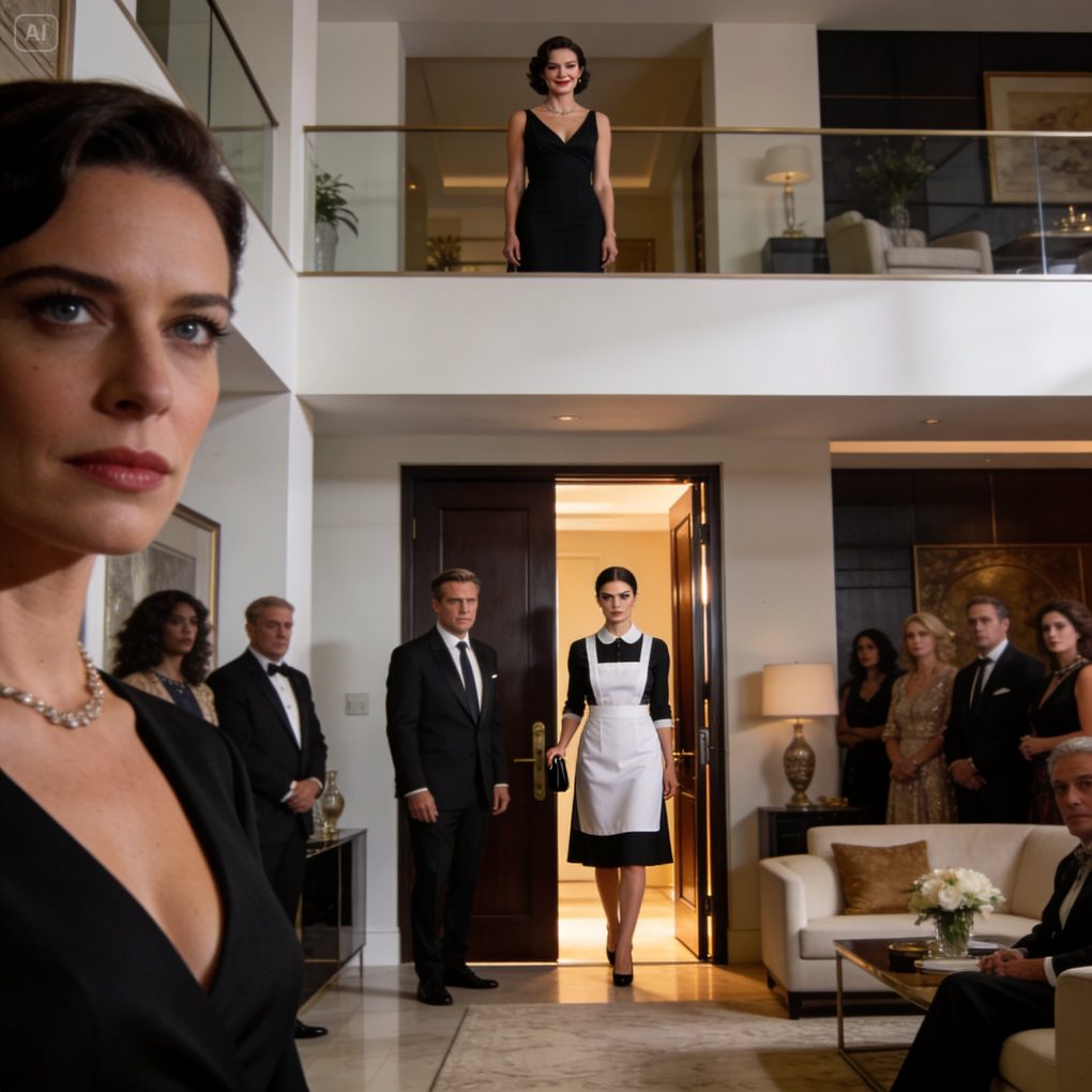 The woman’s eyes flicked past her, taking in the expanse of the foyer, the cluster of expensively dressed onlookers. A slow, cool understanding settled in her gaze.